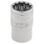 12 point socket manufactured from chrome vanadium steel that's hardened and tempered with a polished finish. Each socket has a knurled ring for extra grip.